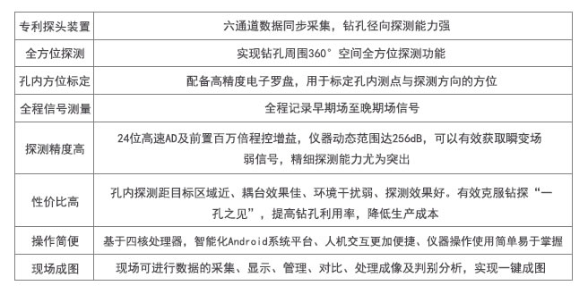 該儀器由瞬變電磁主機(jī)、多分量孔內(nèi)自定位磁探頭和通訊線纜組成,榮獲省高新技術(shù)產(chǎn)品稱號,擁有多項(xiàng)專利。具備鉆孔測井、測斜、測深于一體,為國際首臺礦用高精度鉆孔瞬變電磁儀。
