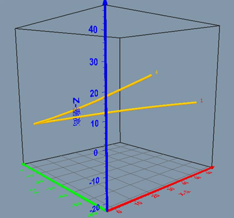某集團(tuán)某礦鉆場(chǎng)雙探水孔在豎直面上的投影(單獨(dú)反映鉆孔的傾角)