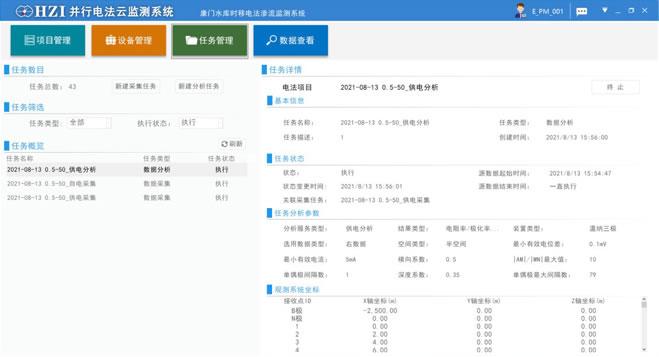 并行電法云監(jiān)測(cè)系統(tǒng)是基于國(guó)家發(fā)明專利(ZL200410014020、ZL201510120120.X)而研制的最新數(shù)字化產(chǎn)品,該系統(tǒng)采用高效率、大數(shù)據(jù)、泛裝置的地電場(chǎng)同步采集技術(shù),并結(jié)合物聯(lián)網(wǎng)技術(shù)、5G傳輸、云端處理、深度學(xué)習(xí)等手段,推動(dòng)了直流電法由傳統(tǒng)單次探測(cè)功能向“遠(yuǎn)程采集、云端存儲(chǔ)、時(shí)變處理、動(dòng)態(tài)預(yù)警”方向轉(zhuǎn)變的新發(fā)展,實(shí)現(xiàn)了“采集在現(xiàn)場(chǎng),傳輸在5G,存儲(chǔ)在云端,控制在手上,顯示在工地,深度處理在管理中心”的功能,為數(shù)字工程建設(shè)提供了重要的技術(shù)支撐。
