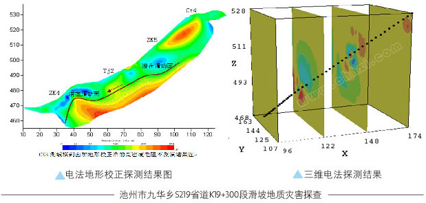 池州市九華鄉(xiāng)S219省K19+300道段發(fā)生滑坡地質(zhì)災害,為找道潛在的滑坡面,利用有效的手段進行治理,采用了淺層地震和直流電法對災害體進行綜合探測。