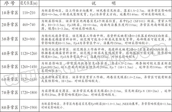 4.查明工作面內(nèi)煤層厚度小于1m的煤層變薄帶的分布發(fā)育情況。