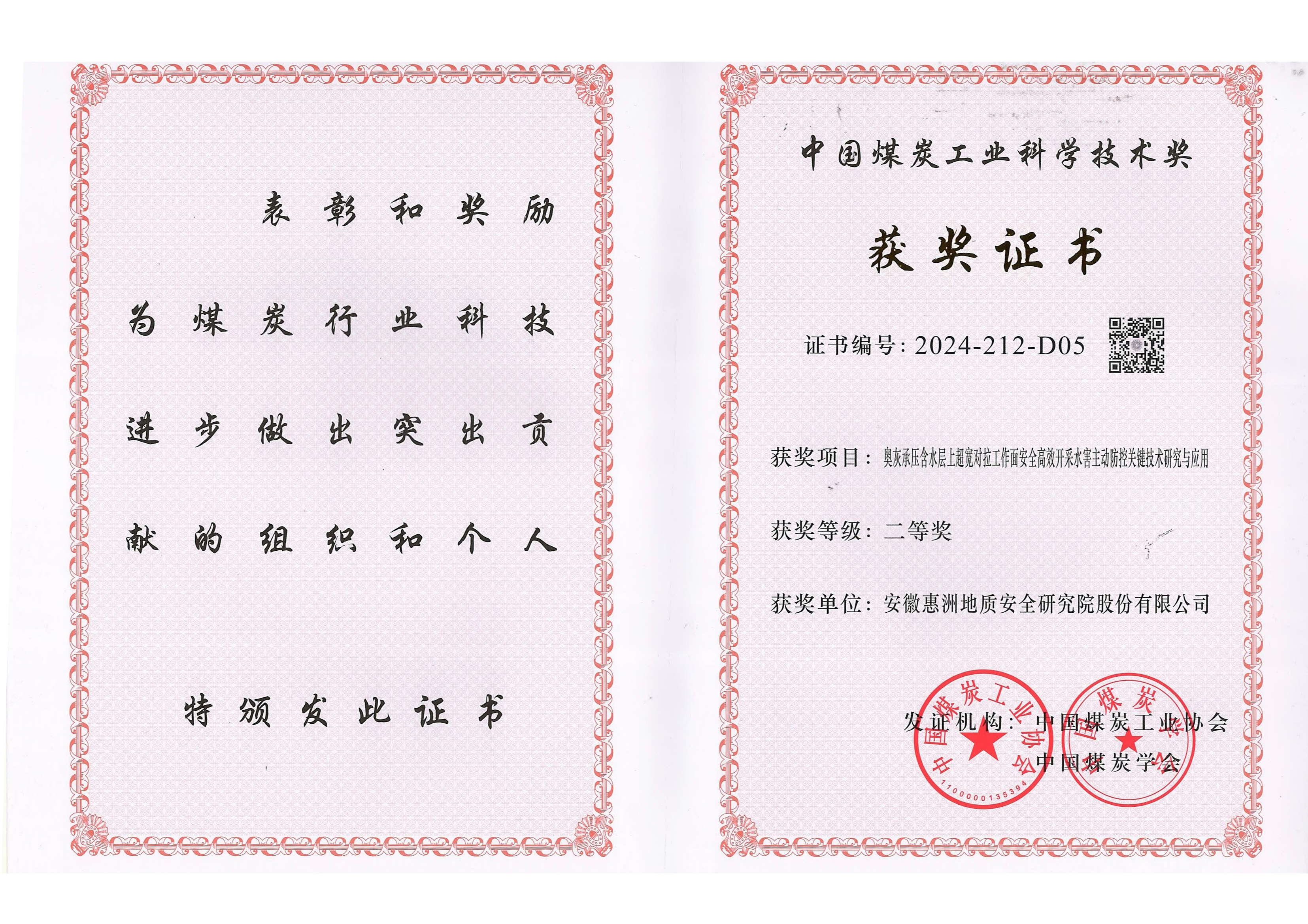 中國煤炭工業(yè)科學(xué)技術(shù)獎是經(jīng)過國家獎勵辦審核批準(zhǔn)的煤炭行業(yè)綜合性科技獎項(xiàng),每年評選一次,是全國煤炭行業(yè)的最高獎項(xiàng),代表了煤炭行業(yè)科技創(chuàng)新的最高水平。