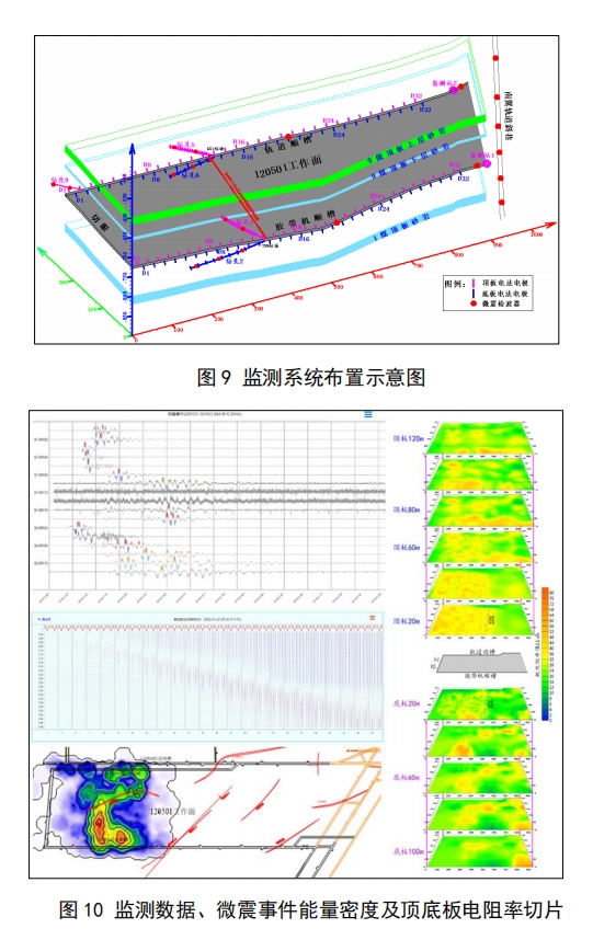 本系統(tǒng)已在中煤新集利辛礦業(yè)有限公司板集煤礦成功投入應(yīng)用。為保障安全回采,在120501 采煤工作面回采前利用軌道順槽和膠帶機(jī)順槽及鉆孔布置電極和檢波器,采用 B/S 架構(gòu)的實(shí)時(shí)在線智能平臺建立頂?shù)装逦⒄鹋c電法耦合水害監(jiān)測預(yù)警系統(tǒng),對工作面頂(底)板開采破壞高(深)度及充水通道形成和發(fā)展進(jìn)行實(shí)時(shí)監(jiān)測、綜合分析。應(yīng)用結(jié)果表明:該系統(tǒng)使煤礦水害預(yù)警響應(yīng)時(shí)間縮短70%,減少鉆探驗(yàn)證工程量40%,為單個(gè)工作面節(jié)約防治水成本超300萬元,并助力該工作面實(shí)現(xiàn)安全增產(chǎn),新增經(jīng)濟(jì)效益顯著提升。