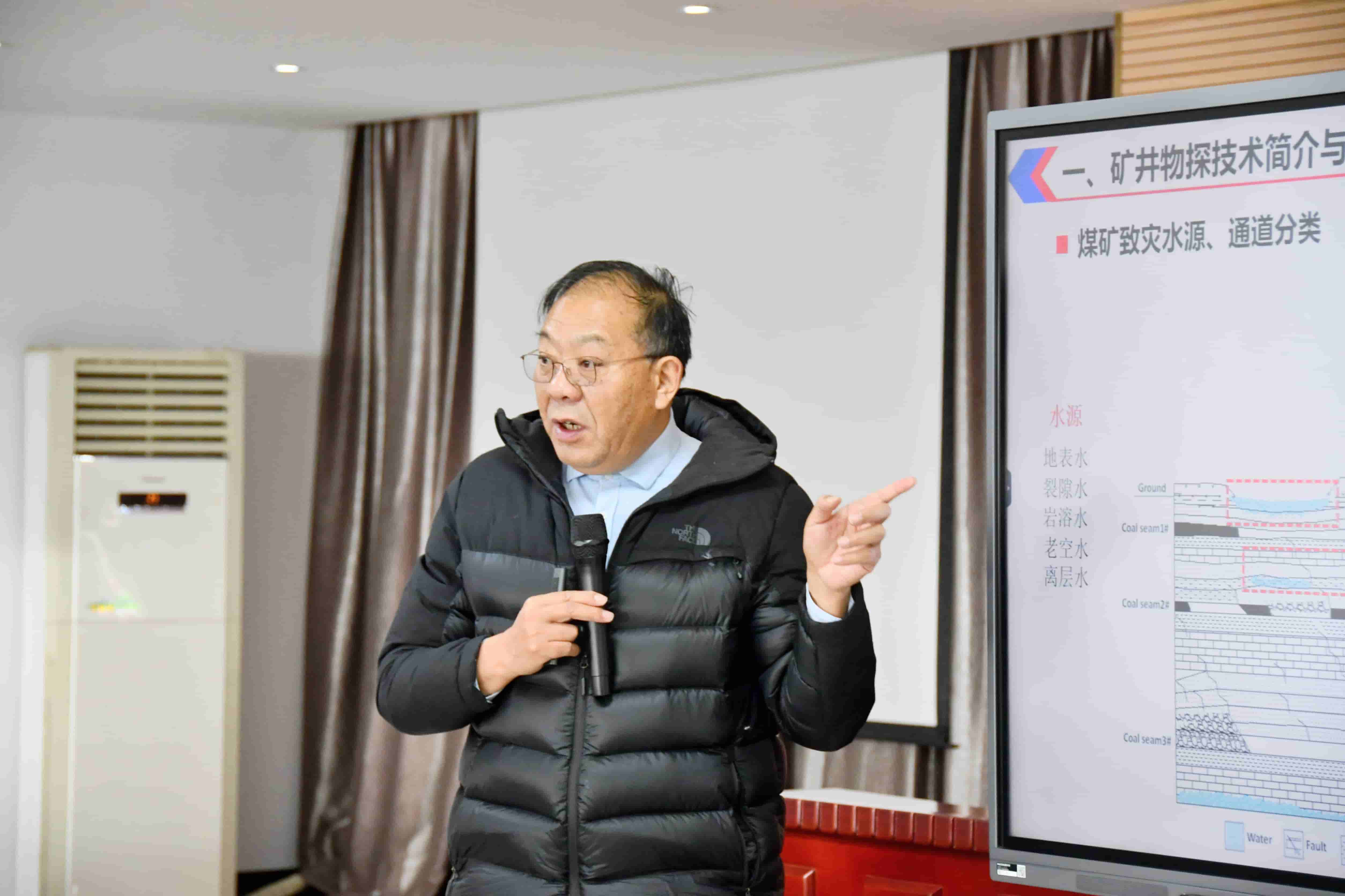交流期間,惠洲院董事長劉盛東教授作題為“物探技術(shù)在礦井地質(zhì)構(gòu)造探查及水害防治中的應(yīng)用”的專題報告。報告結(jié)合山西省煤礦水害特點(diǎn)及探測技術(shù)現(xiàn)狀,重點(diǎn)圍繞水害監(jiān)測預(yù)警物探新技術(shù)與透明地質(zhì)保障體系,系統(tǒng)闡述了多場景物理場監(jiān)測、微震電法耦合監(jiān)測、鉆孔瞬變電磁及孔中并行電法等關(guān)鍵技術(shù)的原理、應(yīng)用環(huán)境(涵蓋隨采、隨掘、隨鉆等工況)及其技術(shù)優(yōu)勢。