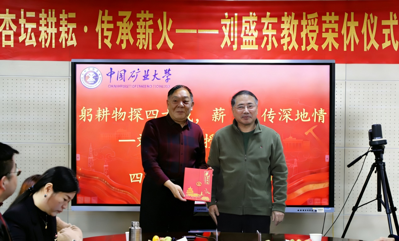 隨后,深地空間探測開發(fā)團隊秘書趙鵬副教授向劉盛東教授贈送了榮休紀(jì)念品,學(xué)生代表劉靜、楊彩及黃蘭英副教授敬獻鮮花,現(xiàn)場溫情涌動,師道傳承之情令人動容。
